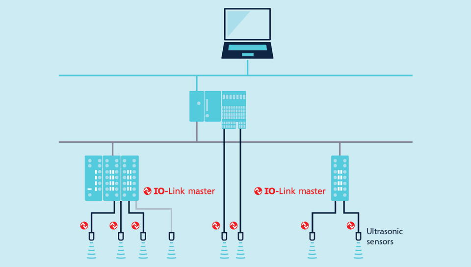 一个IO-Link主站可以有一个或者多个输入和输出。每个输入/输出端口只能附加一个IO-Link设备。传感器和驱动器之间通过一根标准三芯电缆连接,这根非屏蔽电缆长度可达20米。