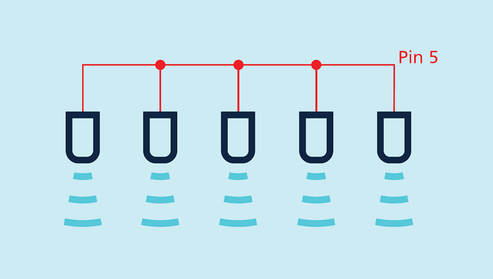 .二つ又はそれ以上のセンサーが近すぎて設置されている場合、お互いに影響を与えてしまいます。これを避けるために、設置間隔を十分に大きく、又は複数のセンサーはお互いに同期する必要があります。次の表は同期されていないセンサー間の最小設置距離を記載しております。